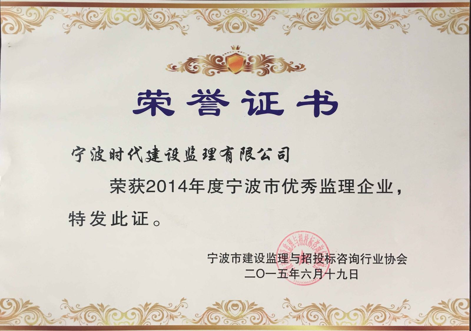 優秀監理企業證書